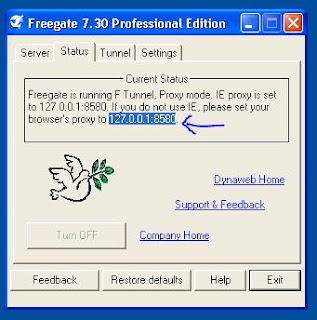 - Now in status of freegate application you can see the proxy that we need to configure in torrent client. (See Pic 1.3)