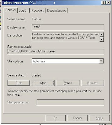 Click on telnet Select Startup type : Automatic click on apply then click on Start then press ok.
