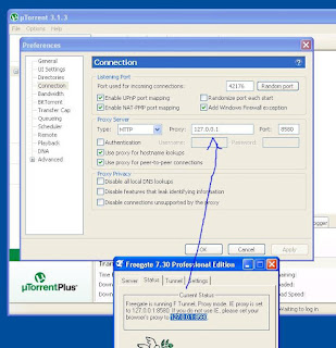 Yes i got this idea when one of my friend wants to know how to use torrent client in office where they have blocked torrent using firewall. as i am aware that he is able to use freegate proxy application to access some restricted site in his office, so using freegate and portable torrent client (See pic 1.1) with some setting we can bypass firewall and use torrent.