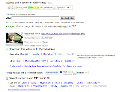 The video will open in pwnyoutube.com and will give you a download option wherein you can download the video in MP3, MP4 and FLV formats.